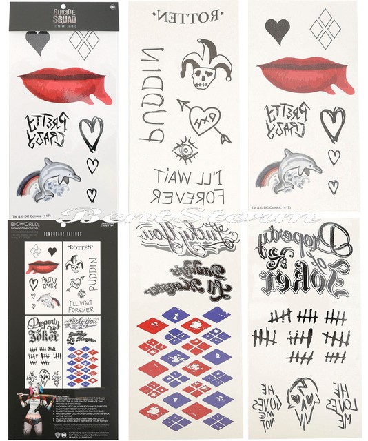 Details About Suicide Squad Harley Quinn Joker Cosplay Temporary Tattoos Dc Comics 20 Designs